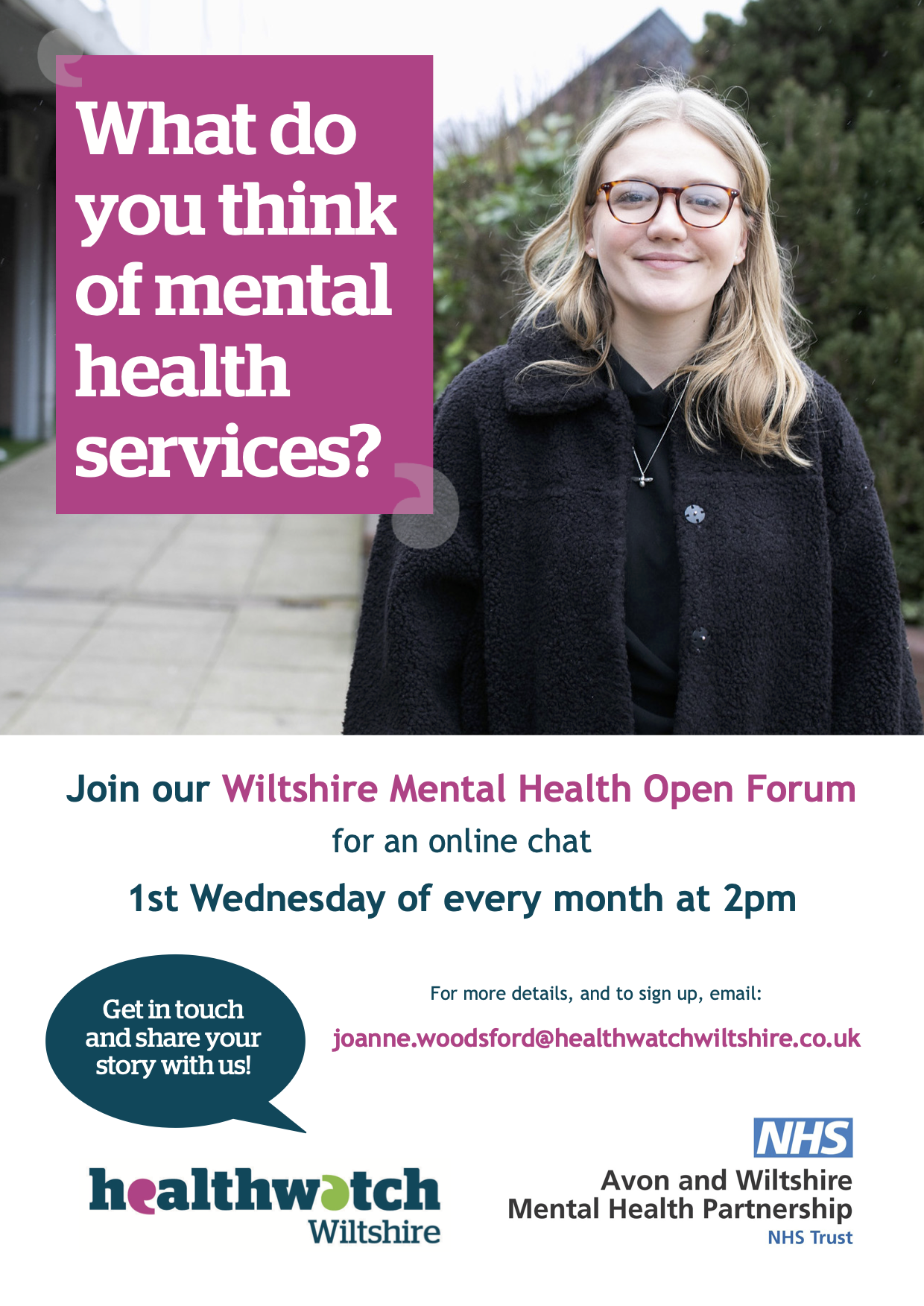T: 07977 221661 E: Joanne.Woodsford@healthwatchwiltshire.co.uk